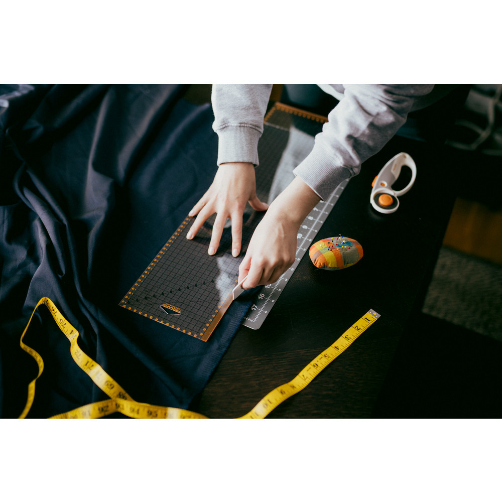 • Átlátszó Design: Az átlátszó anyagnak köszönhetően a szövet mintája jól látható a vonalzó alatt, így pontosan illesztheted a vágásokat.