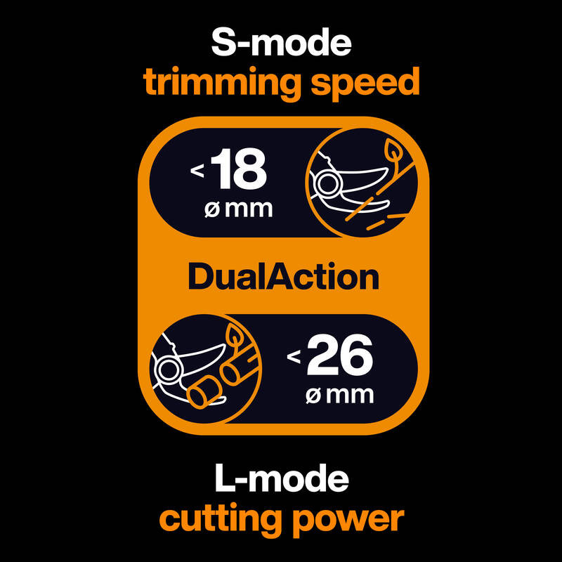 • Sokoldalú vágóképesség: Vágjon gyorsan és pontosan akár Ø 26 mm-es ágakat, vagy használja a megnövelt erőt a friss fa metszéséhez egészen Ø 50 mm átmérőig, így minden feladatra felkészült.