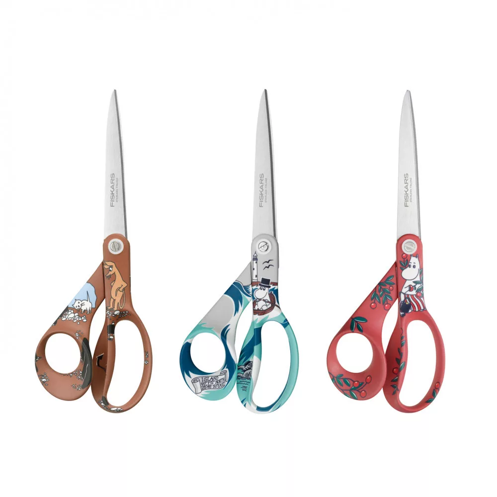 A bájos és csodálatosan eredeti Mumin karakterek játékos Fiskars ollókban kelnek életre. Ezek a praktikus Fiskars Moomin univerzális ollók a szorgos Muminmamát ábrázolják, és különféle vágási feladatokra alkalmasak. Az olló pengéi kiváló minőségű rozsdamentes acélból készültek és precíziósan köszörültek, így biztosítva a vágóerőt egészen a hegyéig. A könnyű, ergonomikus formájú fogantyúk kiváló kényelmet és irányíthatóságot biztosítanak.